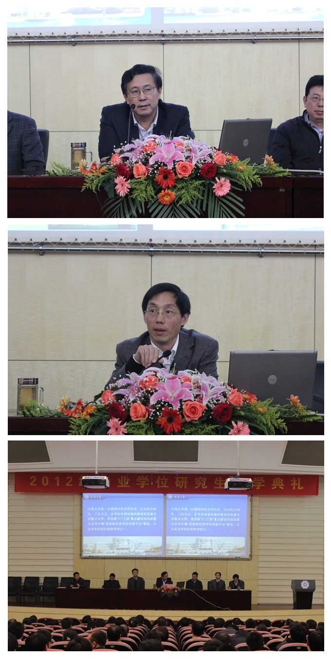 研究生院常务副院长姚纬明教授发表了热情洋溢的讲话,代表学校对2012级工程硕士、MBA新生表示热烈的欢迎,详细介绍了学校的历史沿革、发展进程、办学特色及研究生教育和学科建设的成果,以及研究生院概况,对同学们提出了明确的要求和殷切的期望。