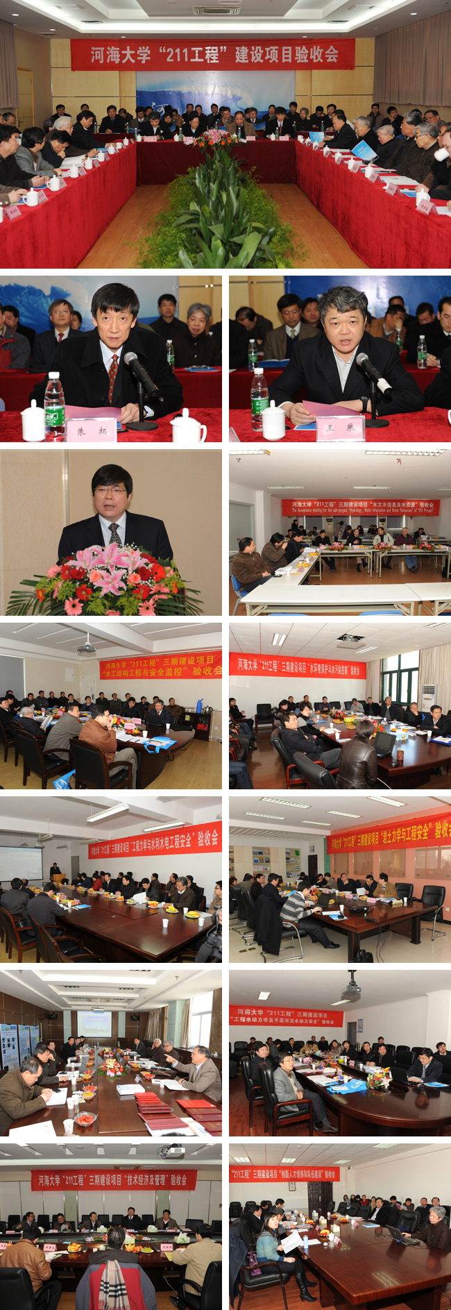 各验收专家组认真听取了重点学科、创新人才培养以及队伍建设等十个项目的建设目标和建设任务完成情况、资金使用管理情况、主要建设成效、标志性成果、项目管理等方面的汇报,审阅了各项目的相关材料,并针对项目的具体问题进行了提问,形成了验收意见。我校“211工程”三期建设项目全部通过校内验收。根据教育部相关文件精神,我校水文水信息及水资源建设项目进行了国际评估和验收。