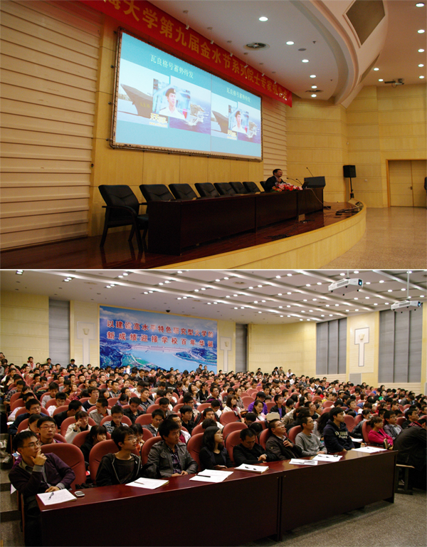2011年10月24日晚19:00,河海大学第九届“金水节”院士专家报告会在闻天馆108拉开帷幕。首场报告会的题目为“新一轮南海危机透视”,主讲人为解放军国际关系学院教授成汉平大校。报告会受到了研究生的广泛关注和热烈欢迎。