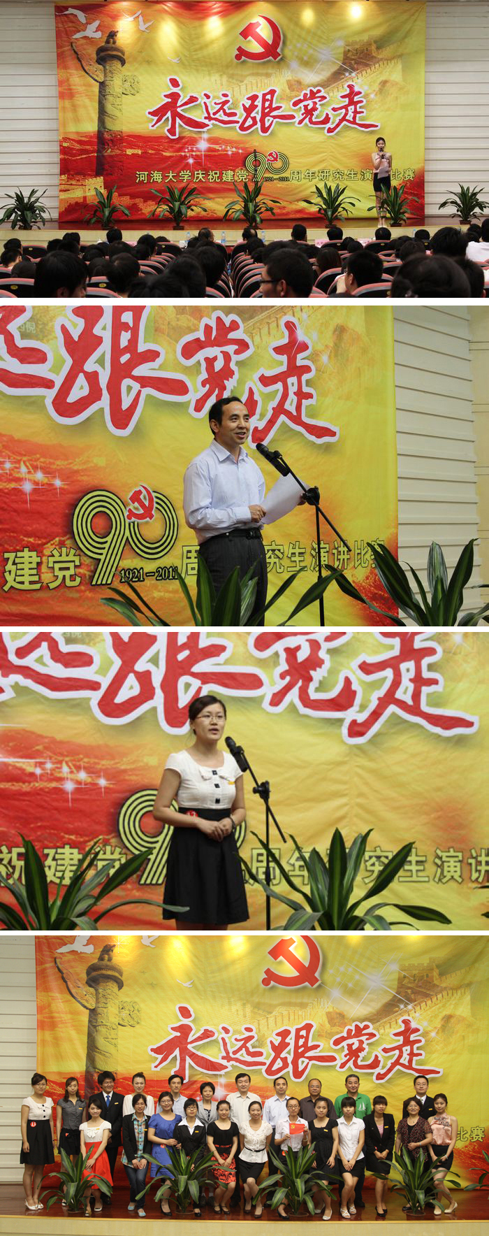 15名参赛选手用真挚的情感讲述了中国共产党成立九十年来的艰辛历程,讴歌了90年来中国共产党取得的丰功伟绩,表达了对英雄前辈的敬意以及河海学子对中国共产党的一片赤诚之心和永远跟党走的坚定信念。
