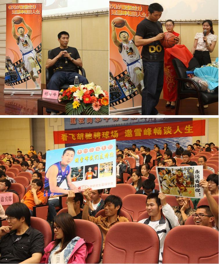 本次的访谈主题是“看飞胡驰骋球场,邀雪峰畅谈人生”。胡雪峰侃侃而谈,与同学们分享了他的篮球故事。从初识篮球到爱上篮球,从青涩小将到明星球员,从少年队到国家队,胡雪峰的篮球经历浓缩了他的奋斗历程。他克服困难、永不放弃的篮球信念深深地感染了现场师生,他风趣幽默的谈吐与真挚感人的讲述令现场掌声不断。互动环节中,报告厅气氛热烈,同学们踊跃提问,胡雪峰悉心解答并与同学互赠礼物。