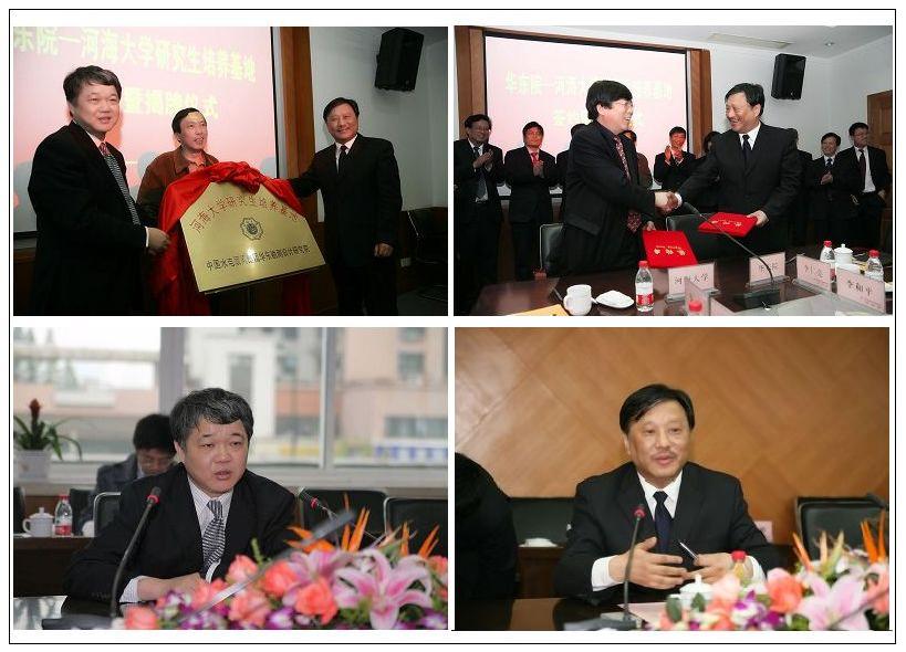 王乘校长发表了热情洋溢的讲话,表示非常高兴能够与华东院共建研究生培养基地。王校长在讲话中指出,随着国家扩大应用型研究生的招生规模,企业将越来越多地参与到研究生的培养过程中来,华东院地处东南经济发达地区,承担着一系列重大水利工程建设项目和市政建设项目的规划设计任务,双方合作建立研究生培养基地,对于我校研究生实践能力的培养必将起到非常积极的作用,同时也希望通过研究生培养基地的建设,进一步加强我校与华东院的科研合作。