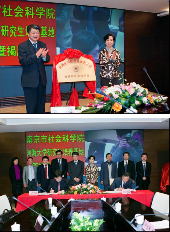 4月16日,河海大学与南京市社会科学院共建研究生培养基地签约暨揭牌仪式在南京举行。河海大学校长、研究生院院长王乘与中共南京市委常委、宣传部部长许慧玲出席仪式并为基地揭牌,河海大学副校长朱跃龙与南京市社科联主席、党组书记、社会科学院院长叶南客签署了共建协议。