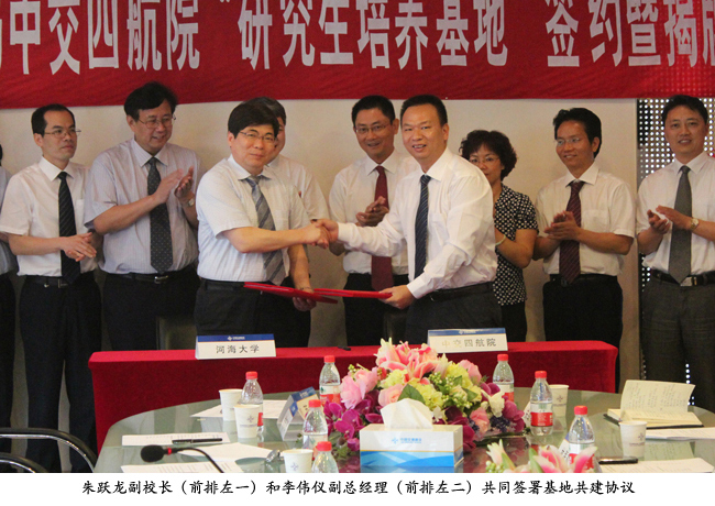 6月11日,河海大学与中交第四航务工程勘察设计院有限公司共建研究生培养基地签约暨揭牌仪式在广州举行,河海大学校长、研究生院院长王乘和中交四航院董事长朱利翔共同为研究生培养基地揭牌;河海大学副校长朱跃龙和中交四航院副总经理李伟仪共同签署研究生培养基地协议。