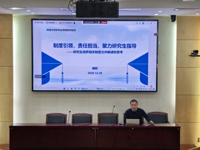 2025年12月26日,学校研究生导师发展中心举办新聘研究生导师系列培训。培训在西康路校区设主会场,在江宁校区、常州校区各学院设分会场,学校近两年新聘研究生导师、学院研究生培养分管领导、研究生院工作人员等300余人通过线下线上方式参加培训。培训由研究生院副院长、研究生导师发展中心主任闻昕主持。